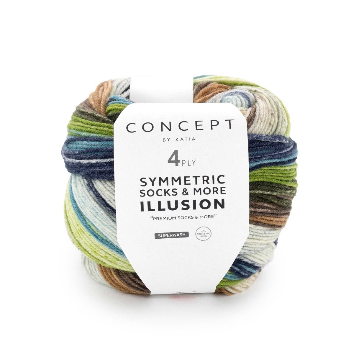 Add color to your feet with Concept Illusion Symmetric Socks & More, an innovative 4-ply yarn with a perfectly repeating pattern. Its playful color effect blends bold stripes with a harmonious gradient, making it ideal for knitting unique socks. Plus, with just one skein, you can easily knit an elegant cowl. Enjoy making vibrant and stylish accessories.