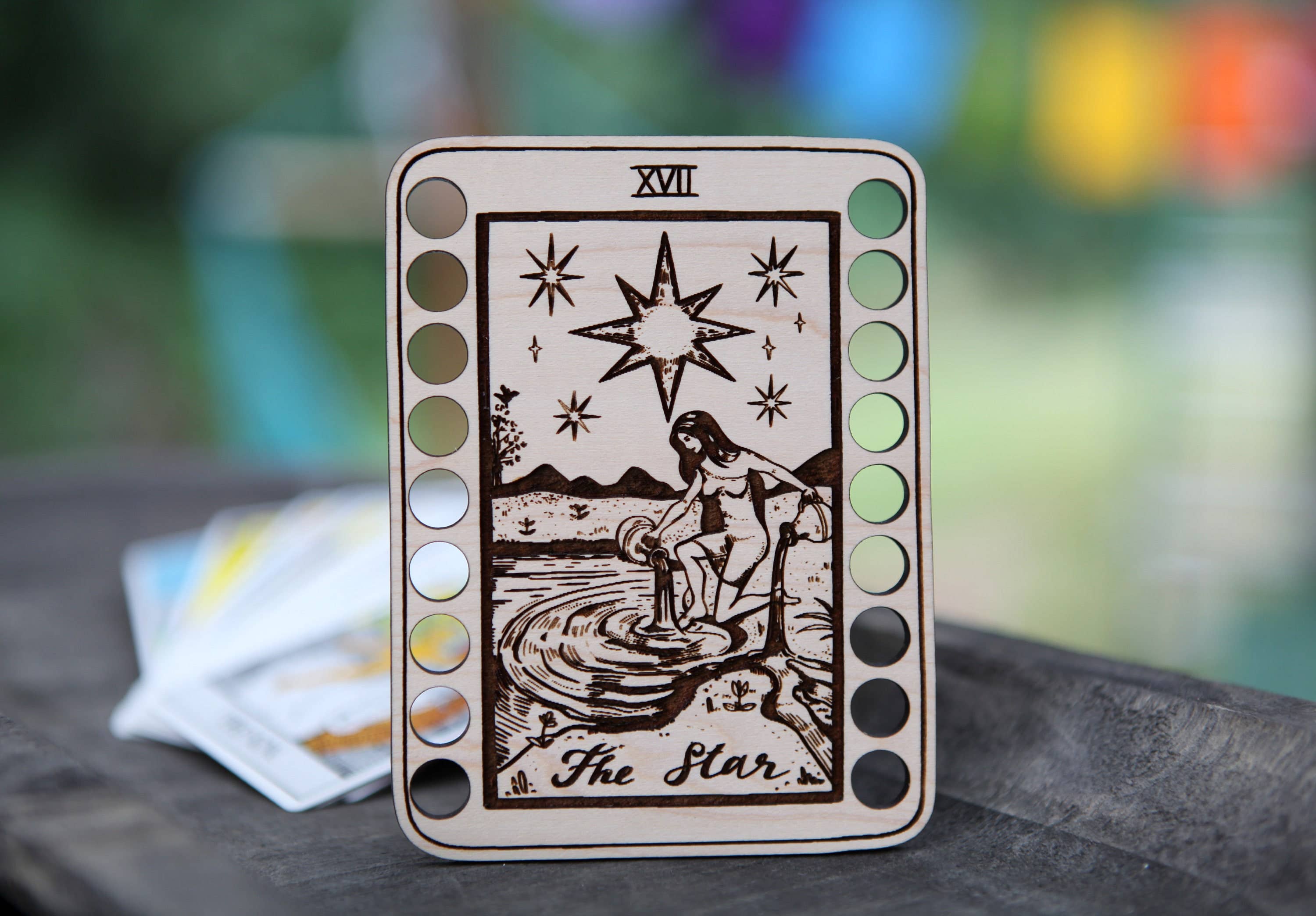Tarot Cards Embroidery Floss Thread Storage Holders - Major Arcana Deck Cards Made From Maple Wood To Store Your Cross Stitch Needlepoint Embroidery floss organizer made from maple wood.