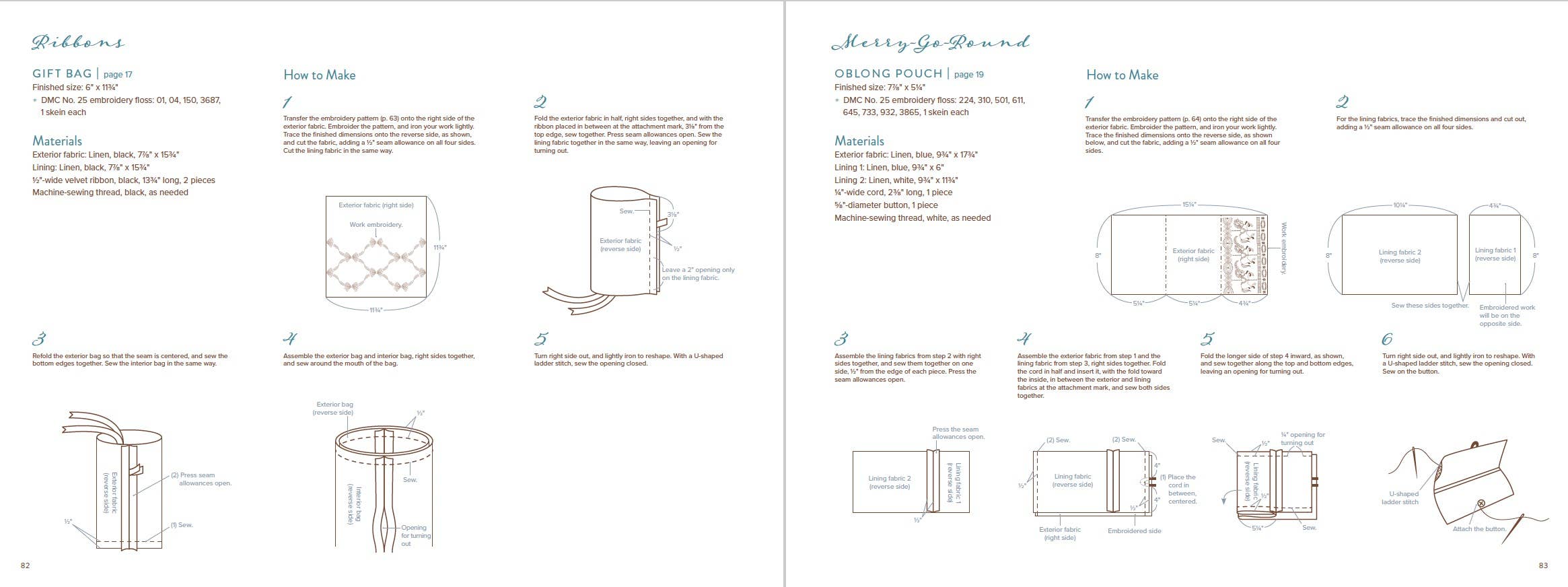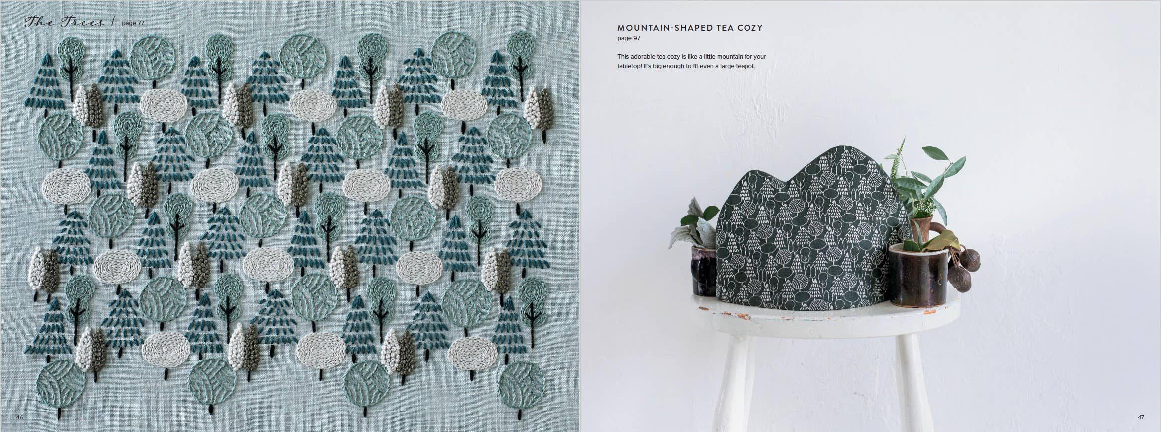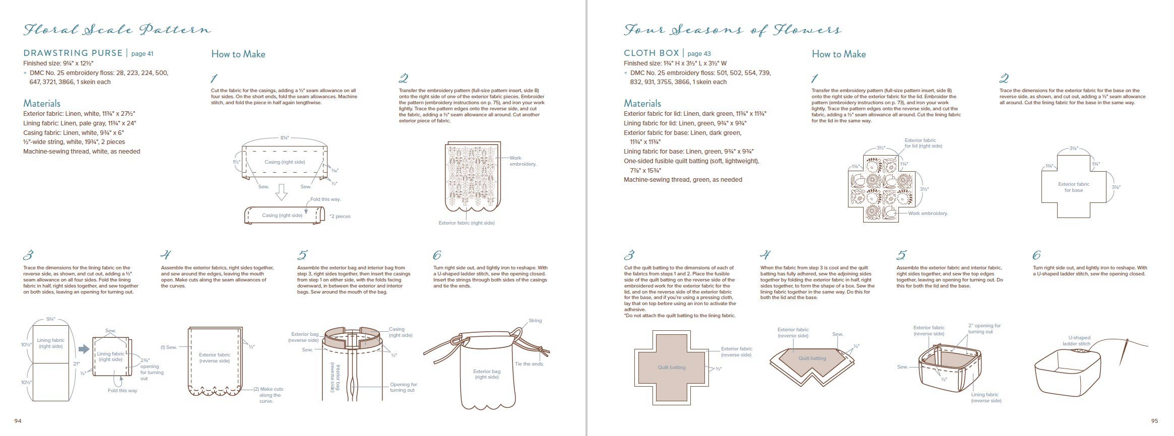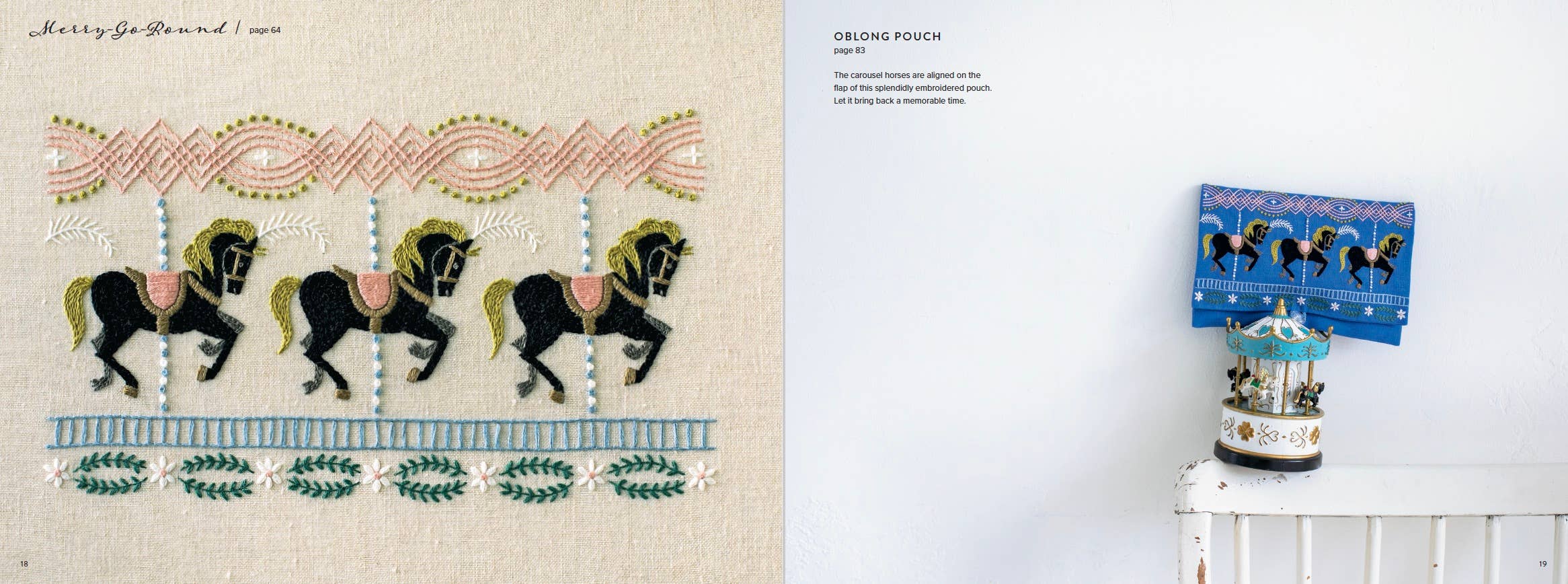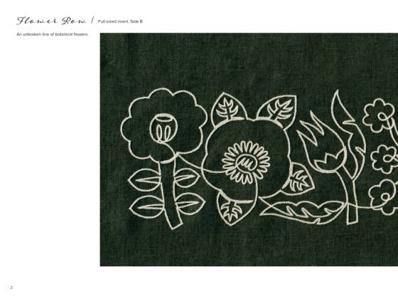 The projects associated with each pattern play on the fun, whimsical nature of the repetitive motifs. Fabric book covers with fences and fall-colored trees, a decorative vine crown, roses trailing down the sides of a tote bag, intricate floral bracelets—these projects and more will give any crafter plenty of creative space to bring these beautiful designs into their home. Each pattern and project come with step-by-step instructions, including stitch types, thread colors, thread time, and var